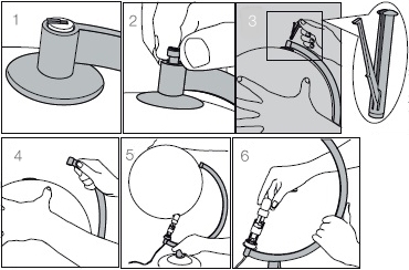 Bei Kunststoffmeridianen, diesen am Nordpol leicht anheben. Dann kann die Kugel zur Seite gekippt und von der Fassung am Südpol abgehoben werden.